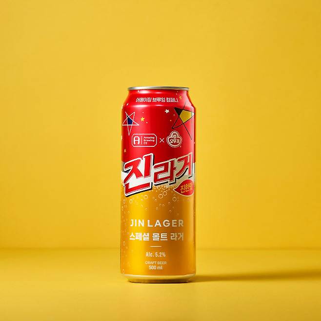 수제맥주 스타트업 어메이징브루잉컴퍼니는 오뚜기 진라면과 협업한 '진라거'를 16일 출시한다고 15일 밝혔다.
