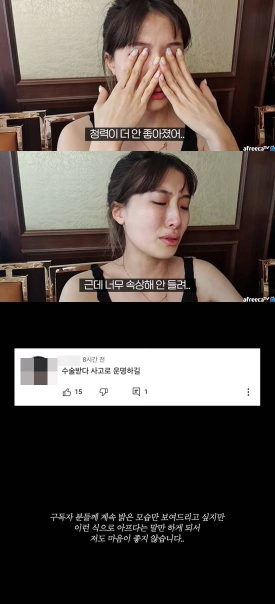 BJ양팡이 악플로 인한 극심한 스트레스를 호소했다.