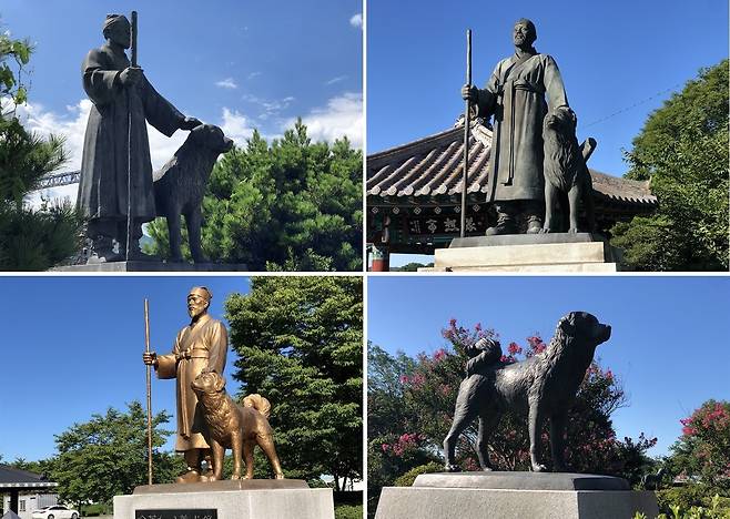 | ▲ 오수의 의견 동상들 오수에 진입하는 철도역과 도로 어귀에, 김개인 생가터와 의견공원에 의견 동상이 있다. |