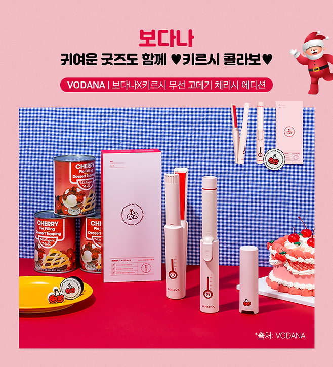 마지막으로 추천할 선물은 보다나X키르시 무선 고데기 체리시 에디션이야. 보다나와 키르시의 첫 번째 콜라보 제품으로 귀여운 '두들체리' 캐릭터를 활용해 무선 미니 고데기와 귀여운 굿즈 2종도 함께 구성되어 있어.