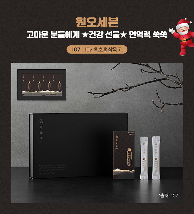 고맙고 소중한 분들에게 원오세븐 10y흑초홍삼옥고로 올 크리스마스, 연말에 건강 선물하는 건 어때? 주는 사람 받는 사람 모두 마음이 따뜻해질 듯.