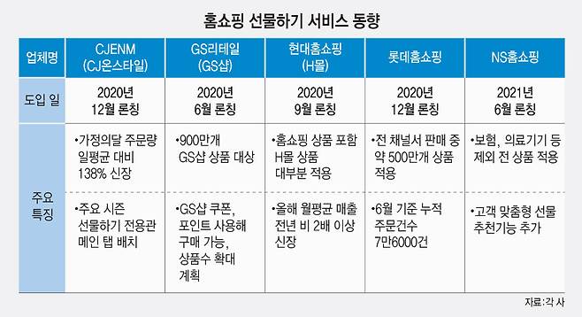 홈쇼핑 업체도 온라인 선물하기에 동참했다.