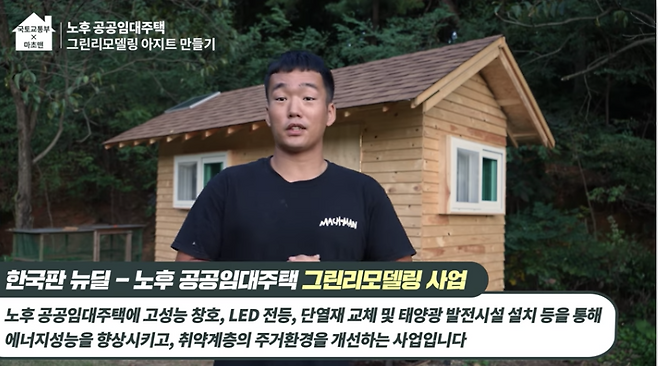 국토교통부 유튜브를 본 적이 있는 사람이라면 그린리모델링이라는 용어가 생소하지는 않을 텐데요. 그린리모델링이란 노후 공공임대주택을 고성능 창호, 단열재, LED 전등 및 태양광 발전 시설을 설치하여 에너지 성능을 향상시켜 어린이나 노인분들이 사용하는 건물을 업그레이드해주는 사업입니다.