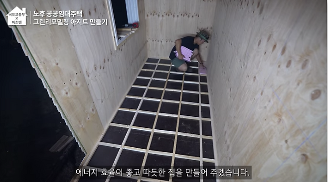 단열의 핵심, 단열성능은 높이고 열 손실 최소화로 난방비는 줄여주는 고성능 이중창을 설치하기 위해 틀까지 짠 후 실리콘으로 마감 처리를 해줍니다. 외장 벽까지 재단하고 꼼꼼하게 부착하면 거의 완성입니다. 이번 캠핑카 그린리모델링은 바닥 단열까지 신경 썼다고 하는데요. 프레임 사이로 단열재를 채워 넣어 에너지 효율을 높이고 따뜻한 집으로 만들었습니다.