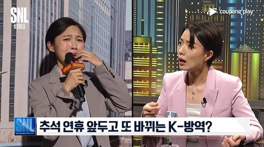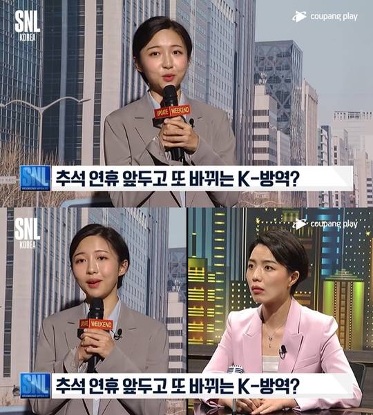 9월 11일 방송된 쿠팡플레이 'SNL 코리아'의 '위클리 업데이트'에는 배우 주현영이 인턴 기자로 분한 코너가 공개됐다. 주현영이 연기한 인턴 기자가 추석 연휴를 앞두고 완화된 코로나19 방역 지침에 대한 정보를 전달하는 게 코너의 주된 설정이다.