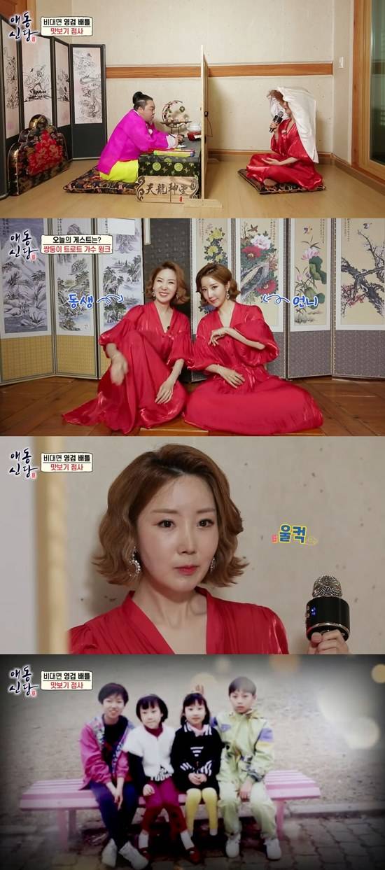 1일 공개된 유튜브 채널 '베짱이엔터테인먼트'의 '애동신당'에는 쌍둥이 트로트 가수 윙크가 게스트로 출연했다.
