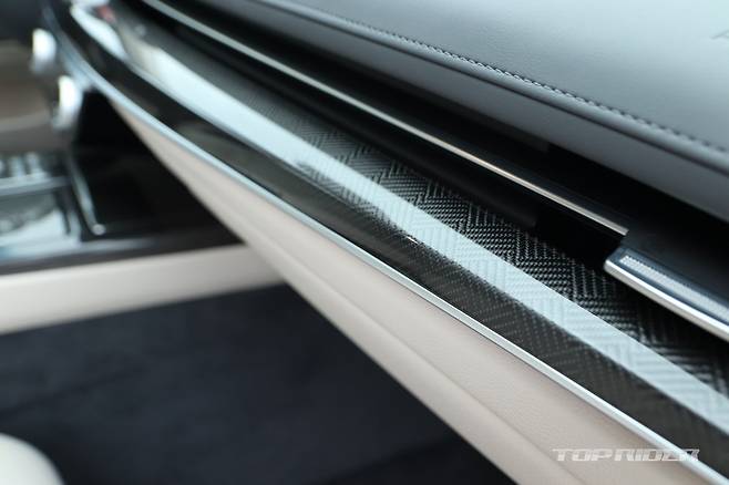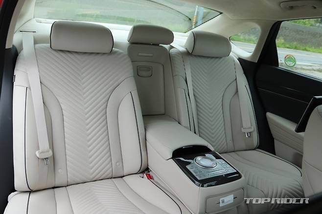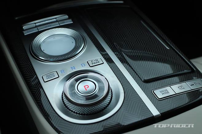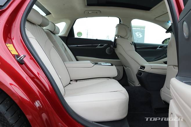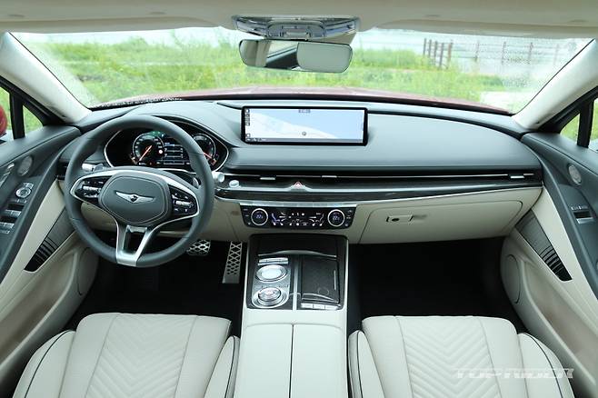 가니쉬는 제네시스 브랜드 최초로 제공되는 다이아몬드 패턴의 하이브리드 위빙 패턴을 비롯해 리얼 알루미늄, 리얼 카본 중 선택할 수 있다. 전용 내장 컬러는 옵시디언 블랙/세비야 레드 투톤이다. 시승차는 스포츠 디자인 셀렉션 그레이/바닐라 베이지 투톤(270만원)이다.