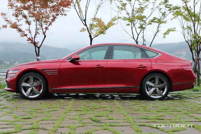 다만, 교차로에서 우회전 혹은 주행중 오른쪽 골목으로 진입시 스티어링 휠을 과도하게 조작할 경우 뒷바퀴가 인도턱에 걸릴 수 있다. 일반 G80와 비교해 스티어링 휠 조작을 여유롭게 해도 괜찮다. 프리뷰 전자제어 서스펜션은 스포츠에 맞게 조정돼 승차감이 탄탄하다.