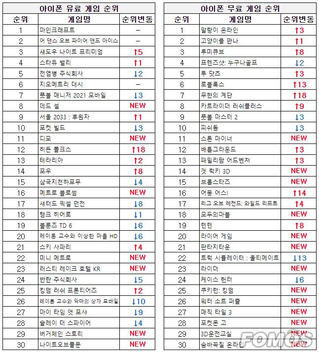 ■ 아이폰 게임 순위