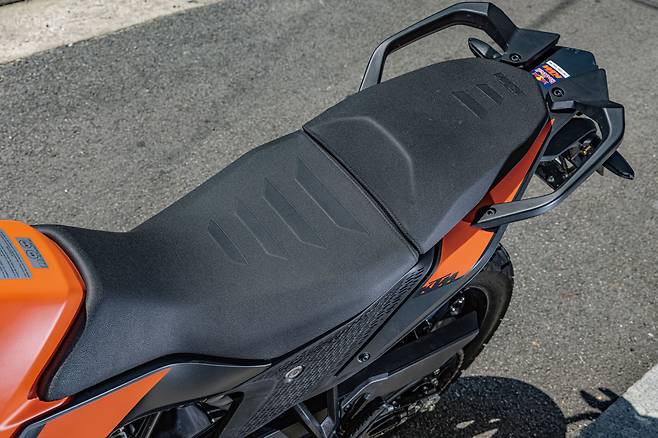 수치상 시트고는 855mm로 생각보다 높다. 1290 슈퍼 어드벤처 S의 시트고가 860mm라는 것을 고려하면 꽤 높은 편이다. 하지만 실제로 앉았을 때는 시트의 앞쪽 형상이 날렵하고 차체가 가볍기 때문에 발착지성의 부담이 적다. 핸들바는 좌우로 넓고 높게 올라왔기 때문에 자연스레 상체가 서는 포지션이 취해진다. 전방의 투명 윈드 스크린은 오프로드 주행을 고려하여 낮은 위치에 장착되어 있다.