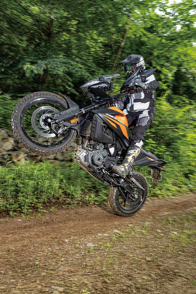 타이어의 폭이 좁아 노면 추종성이 뛰어나고 마찰력도 우수한 편이다. 어드벤처 포지션에 비해 무게중심이 낮기 때문에 바이크를 기울일 때 불안감이 적다. 타이어가 살짝 미끄러지더라도 차량의 무게가 가벼워 대처하기 쉬웠다. 1단 기어에서 50km/h의 속도까지 가속할 수 있기 때문에 초보자도 편안하게 다룰 수 있을 것 같다. 엔진의 저속 토크가 훌륭하기 때문에 어느 정도 탄력이 붙으면 2단 기어로 주행해도 여유롭다. ABS 로드 모드에서는 개입이 빠르기 때문에 제동거리는 늘어나지만 초보자 입장에서는 안정적인 제동을 보장받을 수 있다.