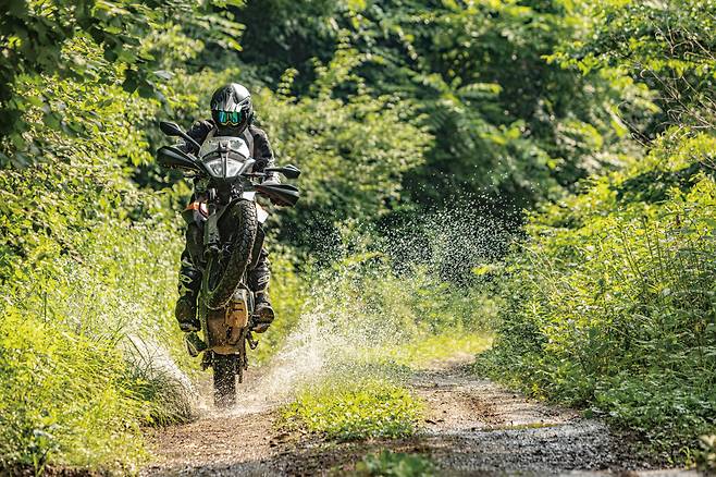 물론 어드벤처라고 꼭 오프로드를 달려야 하는 것은 아니다. 흙길을 밟지 않더라도 그저 어드벤처의 룩이 좋아서 선택할 수도 있고 어드벤처의 핸들링과 주행감각 때문에 선택할 수도 있다. 다만 할 수 있는데 안 하는 것과 못하는 것은 천지차이다. 390 어드벤처는 온로드와 오프로드를 넘나들 수 있는 성능을 갖춘 ‘진짜 어드벤처’다. 라이더가 원한다면 언제든 오프로드로 뛰어들 준비가 되어 있다.