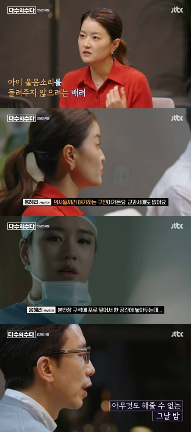 또 "저도 사실 무뇌아를 받아본 적 있는데, 자연적으로 하늘에 갈 때까지 분만장 구석에 포로 덮어둔다. 당직이니까 이 아이들이 밤새 우는 소리가 계속 들리는데, 제일 중요한 건 부모의 잘못이 아니라는 거다. '엄마 아빠가 잘못한 게 하나도 없고, 정말 애쓰셨고, 할 수 있는 건 다 한 거다'고 말해주는데, 그 대사까지 '찐'이었다"고 덧붙였다.