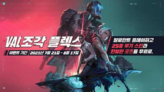 21일 라이엇 게임즈의 FPS 게임 발로란트(VALORANT)가 출시 1주년을 기념해 오늘 21부터 4주 간 'VAL조각 플렉스' 이벤트를 실시한다.