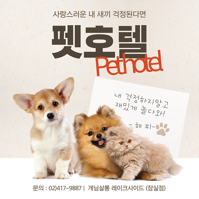 함께하지 못해 아쉬웠다면 롯데호텔 월드 이용 후 용인의 펫 전용 리조트에서 함께 시간을 보내보는 건 어떨까요?