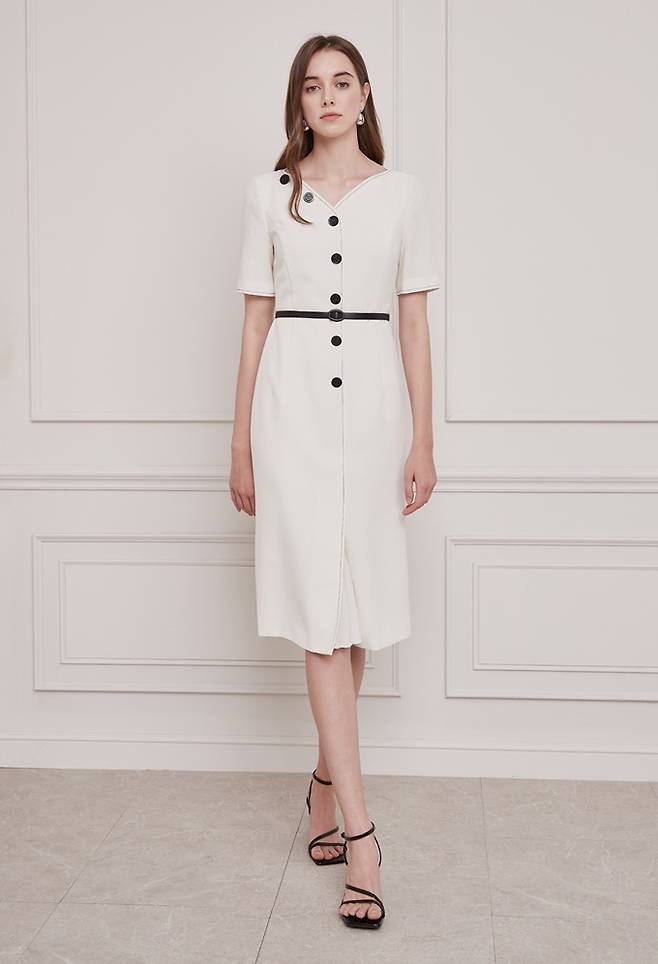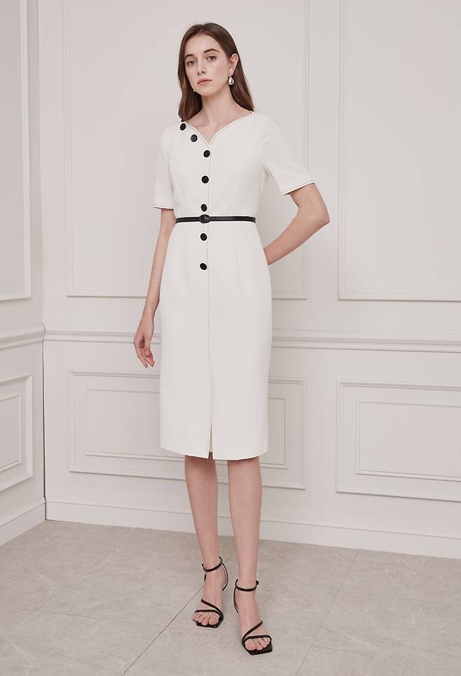 여성 캐릭터캐주얼 '지고트' 펜슬 실루엣의 벨티드 원피스로 연출한 단아한 페미닌룩