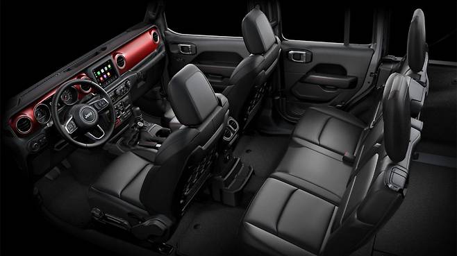 랭글러 4xe 모델에서 한 가지 아쉬운 점은 바로 배터리가 뒷좌석 아래쪽에 장착되어서 시트의 폴딩이 완전하지 못하다는 것이에요. 랭글러는 오프로드를 자유자재로 넘나들며 오지캠핑, 오지에서의 차박 효용성을 극단적으로 높일 수 있다는 것이 장점인데 배터리가 추가로 장착되면서 평탄화가 잘되지 않게끔 구성이 되어서 조금 아쉬워요. 하지만 배터리를 장착하고 전기모터를 활용한 덕분에 매우 조용하면서도 힘이 넘치는 오프로드 드라이빙을 즐길 수 있다는 것은 굉장한 장점이에요.