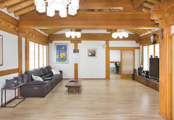 옛 멋스러움에 현대의 실용성을 더해 한옥은 더 이상 불편하고 추운 건물이 아니다. 건축주 부부가 한옥을 짓기로 마음먹은 것도 우리의 전통과 멋, 단아한 모습에 현대 주거의 편의성을 갖췄기 때문이다. 이 한옥은 고풍스러우면서도 위풍당당한 모습의 솟을대문이 방문객을 맞이한다. 대문 옆에는 대지 레벨 차를 이용한 벙커형 주차장이 전통과 현대의 조화를 이뤄 입구에서부터 색다르게 다가온다. 과거 한옥은 부엌과 화장실이 외부에서 연결되는 구조라 불편했다. 당시 건축 기술과 환경을 고려하면 당연한 공간 구성이다. 하지만, 시대 변화에 따라 부엌은 식당을 겸비한 편리한 현대식 주방으로 재래식 화장실은 깔끔하고 깨끗한 환경에 욕실 기능을 더한 위생 공간으로 변해 실내로 들어왔다. 반 외부공간인 대청은 기능과 역할, 감성을 그대로 담아 거실로 진화해 다목적 공간으로 활용하게 됐다. 벽체는 다양한 방식으로 단열 성능을 보강하고, 열 손실이 많던 창호는 한지로 멋 낸 전통 창문에 시스템창호를 덧창으로 설치해 멋과 성능을 한번에 해결했다. 무엇보다 한옥은 돌, 흙, 나무와 같은 자연 친화적 소재로 만들어 인체에 좋은 영향을 미치고 실내 습도를 조절하는 기능이 뛰어나 늘 깨끗하고 쾌적한 환경을 유지하는 점이 가장 큰 장점이다.