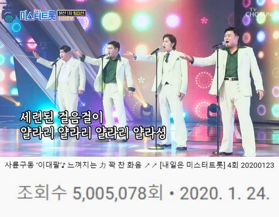 (엑스포츠뉴스 이정범 기자) ‘미스터트롯’ 화제의 무대 중 하나인 ‘이대팔’ 무대가 500만 뷰를 넘어섰다.