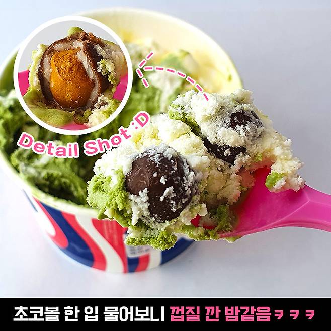 초코나무숲 단종 소식에 광광 울었던 사람들 벌떡 일어날 맛ㅎㅎ 녹차는 초코나무 숲보다 조금 연한 쌉싸름한 맛! 사실 치즈+그린티+초코볼 조합으로 맛있는 건 다 넣었는데 맛이 없을 수 없죠. 그래도 초코나무 숲이 돌아온다면 저는 초나숲으로 돌아가겠어요 :D 얼른 재출시되어서 같이 먹을 수 있는 날이 오길~!