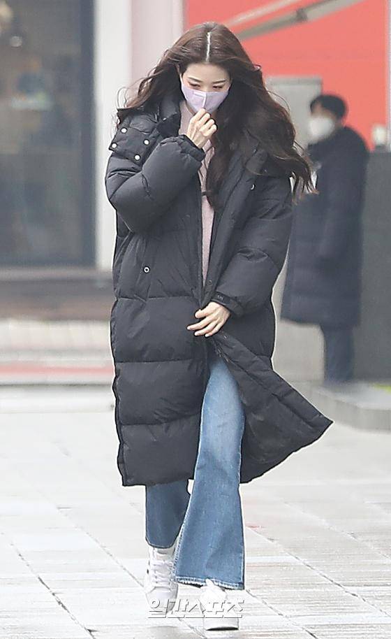 그룹 아이브가 15일 오전 서울 양천구 목동 SBS에서 진행되는 ‘김영철의 파워FM’ 사전 녹음에 참석하며 포즈를 취하고 있다.