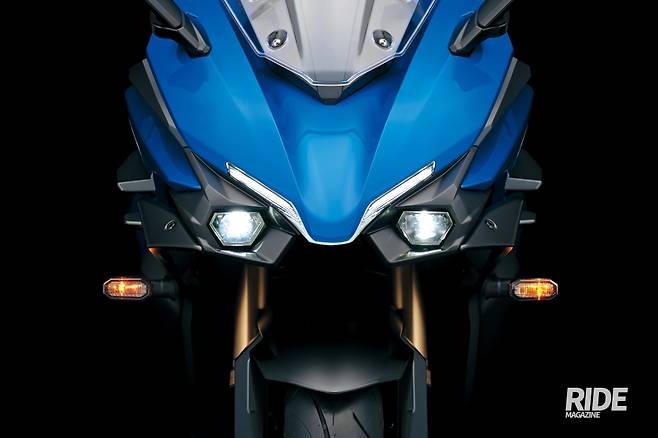 이번 GSX-S1000GT가 가장 놀라운 것은 스즈키의 디자인 방향이 완전히 변화했음을 보여주는 것이다. 얼마 전까지만 해도 스즈키 제품들의 디자인은 곡선이 중심이 되는 경우가 많았는데, 카타나에 이어 2021년형 GSX-S1000에도 각을 살린 디자인이 적용되기 시작했고, 그것이 이번 GSX-S1000GT에서는 더욱 확실하게 드러나기 시작한 것이다. 전면부와 사이드 페어링, 헤드라이트 주변, 연료탱크와 후면부까지 각을 세운 디자인은 최근까지의 스즈키 모델들과는 선을 그은 듯한 느낌이다. 물론 스포티함과 공격적인 면을 강조하기 위함도 있겠고, 공기역학 성능을 고려한 부분도 있을 것이다. 그럼에도 불구하고 측면 형상에선 ‘뾰족하다’, ‘날카롭다’는 느낌은 들지 않는데, 그러한 느낌은 이번 S1000GT가 추구하는 바와는 맞지 않는다는 판단이어서일까? 적당한 느낌은 좋지만, 자칫 과도해지면 다른 모델에도 영향을 줄 수 있으니 말이다.