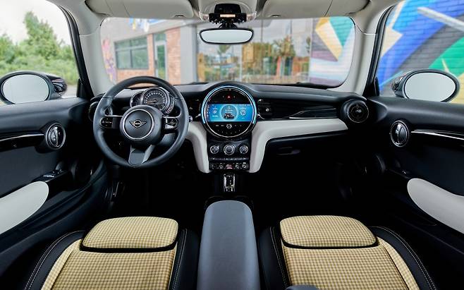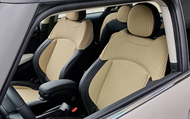 문을 열면 독특한 시트부터 눈에 띈다. 몸이 닿는 부분은 체크무늬 직물로, 나머지는 가죽으로 감쌌다. 대시보드와 도어트림 일부분은 아이보리 컬러로 마감했다. 덕분에 실내 분위기가 한결 화사하다. 편의장비로는 열선 시트와 주차 거리 제어 시스템, 후방 카메라 등을 챙겼다.