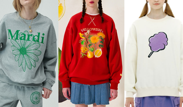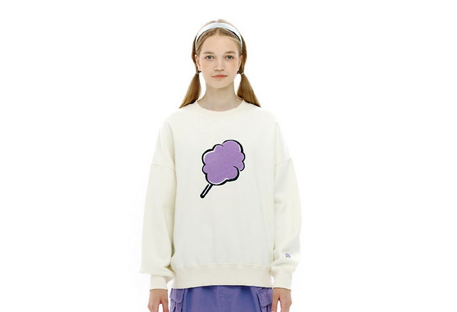시그니처 심벌로 솜사탕을 삼고 있는, 유니크한 컬러로 유스컬처를 지향하는 캐주얼 브랜드 ‘클로티’는 자사의 심벌을 가슴팍에 새긴 스웨트 셔츠를 발매하고 있다. 원사이즈로 풍성한 착용감을 가지고 있는 이 제품은 심벌 부위에 심플하게 준 포인트가 인상적이며, 특히 러블리한 크림 색상의 제품이 가을 시즌에 인기를 얻고 있다.
