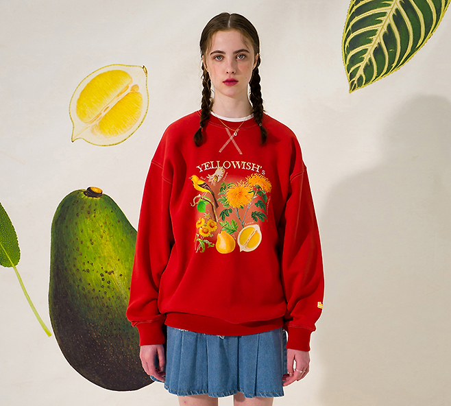 이 회사의 옐로이시 스웨트 셔츠는 노란색으로 포인트 컬러를 주고, 여기에 다양한 오브제를 그려 넣어 조화롭게 꾸민 제품이다. 셔츠의 색감이 전반적으로 화사해 눈길을 끌고, 배색으로 들어간 스티치 디테일로 감각적인 스타일을 더했다. 소매 한쪽에는 브랜드의 시그니처인 옐로 플래그가 자수로 새겨져 있다.