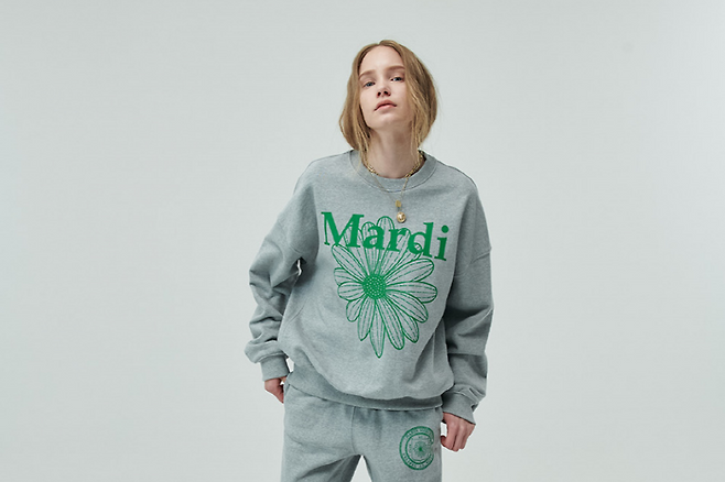 마르디메크르디의 시그니처 프린트를 사용한 오버사이즈 핏의 스웨트 셔츠다. 정면에는 커다란 꽃 모양과 함께, 같은 색으로 크게 새겨진 고딕 폰트의 마르디 텍스트에 포인트를 둔 제품이다. 제품은 면 100%의 재질로, 기장은 총장 63㎝, 가슴둘레 63㎝, 소매 기장은 54㎝로 풍성하게 입을 수 있는 맨투맨 셔츠다.