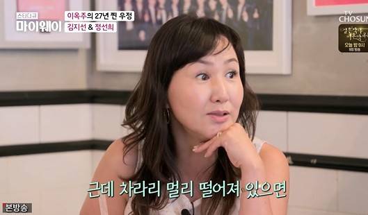 또 이날 정선희는 어려운 사건을 겪고 있을 때 이옥주가 많이 생각났다고 언급했다. 정선희는 “나 사건 나고 힘들 때 자꾸 나한테 ‘미국으로 와, 한국사람 없어’라고 말하고는 했다”고 밝혔고 이옥주는 “집에 있는 것조차도 힘들 것 같았다. 진심으로 왔으면 하는 마음이었다. 매일매일 그런 상황을 부딪혀야 하니까 그게 힘든 거다. 그래도 멀리 떨어져 있으면 마음이 좋아지지 않나”라고 말했다.