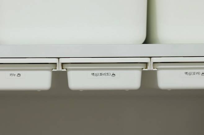 서랍에는 인스턴트커피, 빨대, 나무젓가락, 젓가락 받침대 등을 보관하고 있어요.