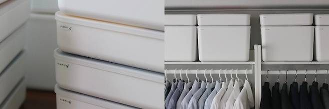 2. 보관함 규격화/통일 하기 : 공간에 맞는 보관함을 찾고, 톤까지 통일하면 더욱 깔끔-!