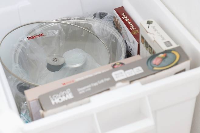리빙박스가 너무 크게 느껴지면 수납함을 넣어 틀을 잡아주면 됩니다.