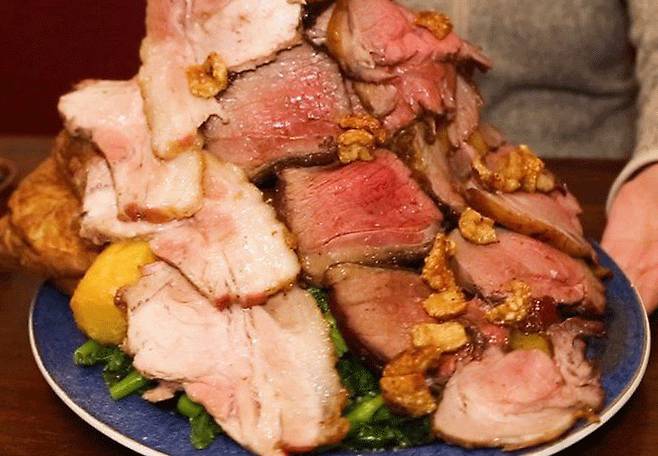 영국 런던에 있는 선데이 로스트 맛집, 구경해볼까요? 유튜브 채널 '비즈니스 인사이더'에서 지역 추천과 TripAdvisor, SNS 추천을 기반으로 꼽은 맛집 중 하나입니다. The Jugged Hare의 선데이 로스트인데요. 질 좋은 고기를 로티세리 방식*으로 3-4시간 구워 육즙을 가득 머금고 있는 게 특징입니다. 가니쉬와 맛의 전체적인 균형이 좋다고 하네요.