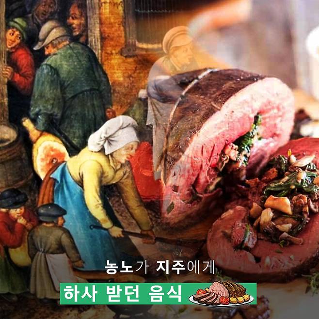 또 다른 유래는 선데이 로스트가 중세 시대, 마을의 농노가 지주에게 하사받았던 음식이라는 설이에요. 농노들은 당시 전투에도 동원이 됐는데요. 일요일에 교회가 끝난 후 전투 훈련을 하기 위해 필드로 나갔는데, 이 연습에서 가장 괄목할 만한 실력을 보여준 농노는 구운 소고기를 받았다는 설이죠.