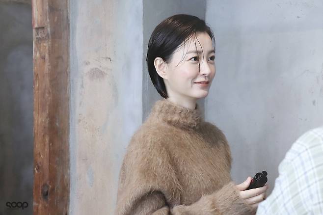 정유미는 숨 가쁘게 진행되는 촬영에도 미소를 잃지 않으며 러블리의 대명사임을 입증했습니다.