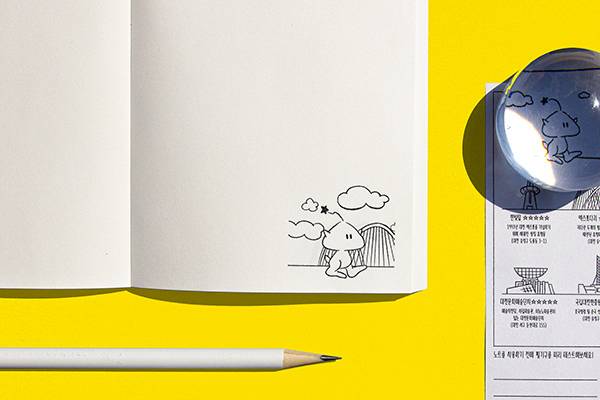 박수연: 이제는 저희를 대표하는 작업이 되어버린 ‘플립 꿈돌 프로젝트'를 소개해 드리겠습니다. 대전마케팅공사에서 지원을 받아 진행하게 된 프로젝트인데요. 1993년에 개최된 대전 엑스포의 캐릭터 ‘꿈돌이’를 이용해 지역 상품을 디자인했습니다. ‘꿈돌이’는 대전에서 태어났고 대전을 상징하는 캐릭터인 만큼 ‘대전 여행’이라는 지역적 키워드를 연결시켜 다양한 굿즈를 제작해 보고자 했어요. 우선 꿈돌이가 대전의 낮과 밤에 걸어 다니는 애니메이션이 귀엽게 녹아있는 노트 세트를 플립 북 형태로 디자인했고요. 노트와 함께 사용할 수 있는 목공 연필, 캐릭터 책갈피, 렌티큘러 카드 등의 제품군 제작도 시도해 보았습니다.