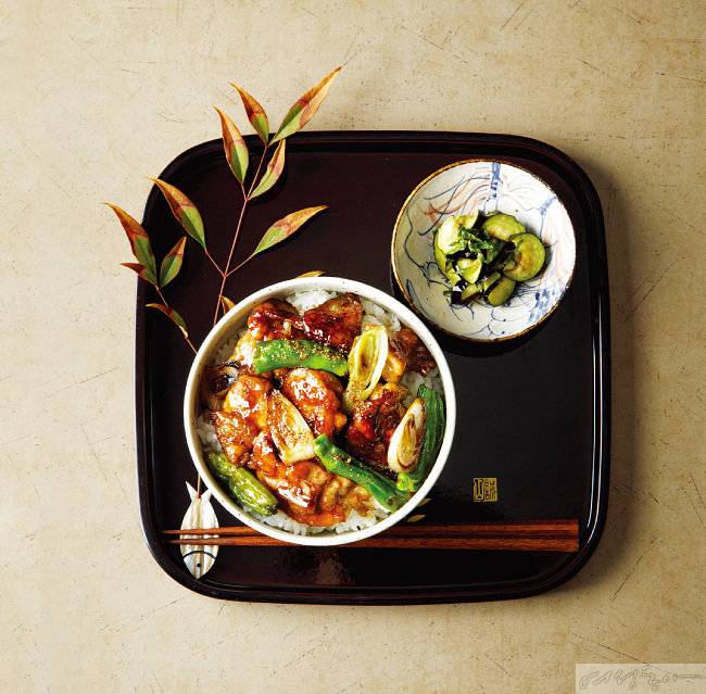 Ingredients닭다리 살 300g, 전분 적당량, 대파(흰 부분) 1대, 꽈리고추 6개, 양념(간장 2큰술, 미림 · 청주 1큰술씩, 설탕 ½큰술), 식용유 1큰술, 밥 1공기, 시치미 또는 초피 가루 약간