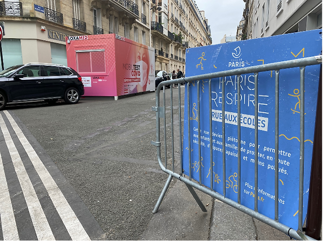◆학교 주변 도로의 차량 운행을 완전히 통제하고 있다. ©파리 시청 홈페이지