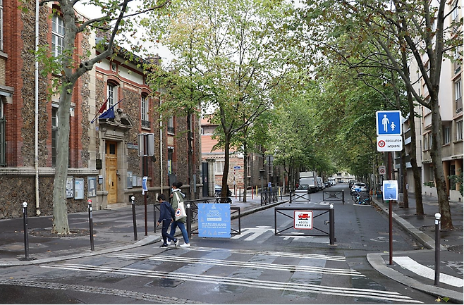 ◆파리 17구에서 '학교 가는 길(rues aux écoles, 스쿨존)' 프로젝트가 시행 중인 학교 주변 거리 모습 ©모니카 박