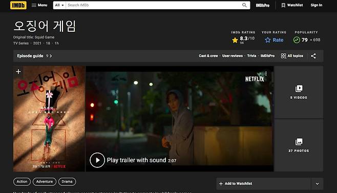 글로벌 평점 사이트 IMDB에서는 10점 만점에 8.3점을 기록하고 있는 중이다. 여기에 넷플릭스가 서비스되고 있지 않은 중국에서 12만이 넘는 웨이보 해시태그를 기록하고 있어서 상당수의 인원이 남몰래 <오징어 게임>을 시청하고 있는 것으로 추정되고 있다.