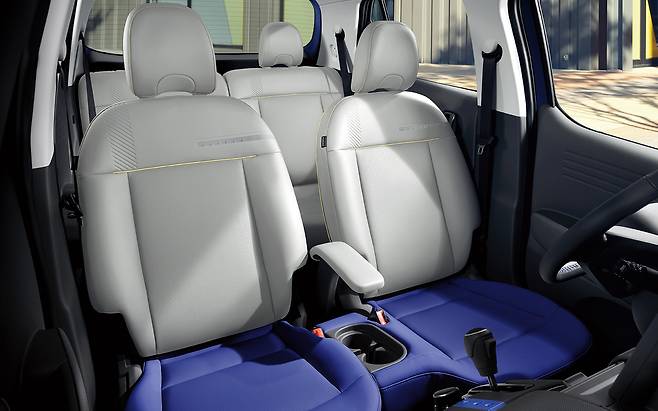투톤 색상 배열은 1열 좌석에 적용돼 있다. 좌석 후면 가장자리에 지퍼 형태로 박음질을 해 개성을 드러냈다.