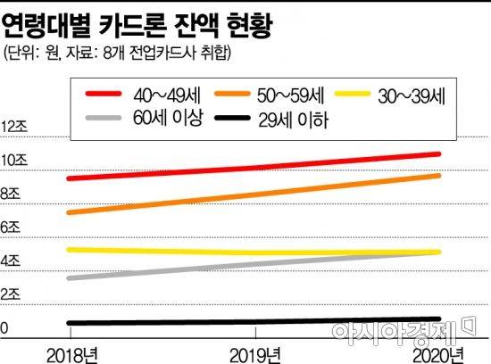 지난해 말 8개 카드사 카드론 잔액은 32조460억원으로 역대 최고치를 기록했다. 그 중에서도 30세 미만의 카드론 잔액은 1조1410억원으로 전년대비 18.5% 증가했다. 30대와 40대의 연간 증가율이 각각 1.1%, 8.2%인 것에 비하면 급증한 수치다.