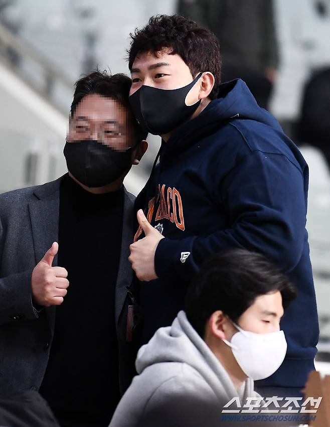 2021-2022 V리그 남자부 우리카드와 삼성화재의 경기가 29일 장충체육관에서 열렸다. 배구장을 찾은 메이저리거 최지만이 팬과 사진 을 찍고 있다. 장충=박재만 기자 pjm@sportschosun.com/2021.12.29/