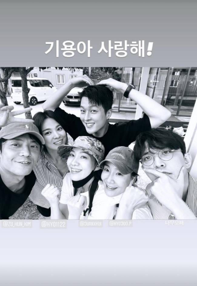 배우 송혜교부터 최희서, 박효주, 김주헌, 윤나무가 자리한 가운데 장기용은 머리 위로 하트를 그리고 있어 눈길을 끌었다.