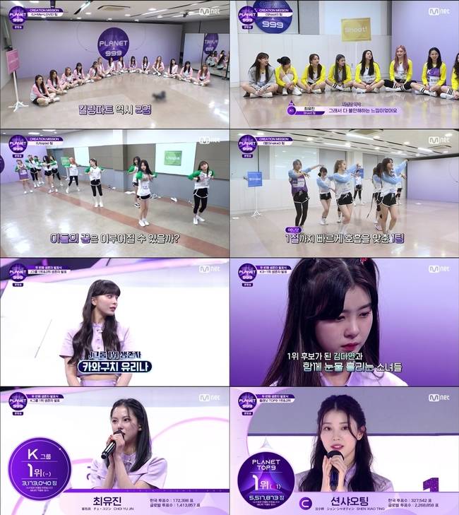 이어서 데뷔조를 상징하는 플래닛 TOP9 발표가 계속됐다. 9위 김채현, 8위 차이빙, 7위 황씽치아오, 6위 수루이치, 5위 최유진, 4위 에자키 히카루, 3위 사카모토 마시로, 2위 카와구치 유리나, 1위 션샤오팅 순이었다. 처음으로 TOP9 1위를 션샤오팅은 167개국 중 한국, 독일, 러시아를 포함한 61개국에서 투표수 1위를 차지하며 글로벌 팬들의 지지를 받았다. 션샤오팅은 지금 제일 높은 자리에 있지만 뒷걸음치지 않겠다. 앞으로도 계속 함께 나아갔으면 좋겠다고 소감을 전했다.