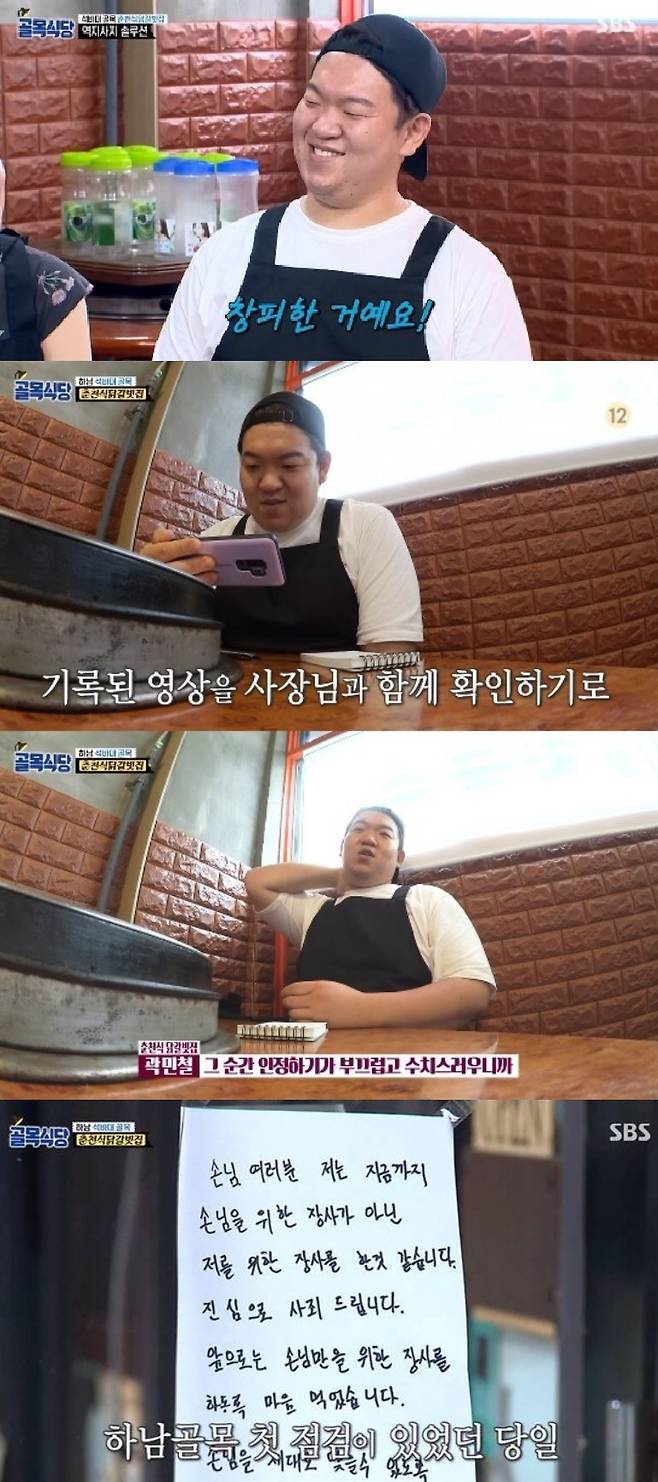 사장님은 카메라가 보이는 곳에서 열심히 청소하는 시늉만 했다. 지인이 "어차피 이런 건 안 닦아도 된다. 리모델링 하면 또 더러워 진다"고 하자 사장님은 "카메라 돌아가고 있어서 카메라 앞에 있는 것만 닦는다"고 말했다. 또한 앞서 방송에서 반성의 눈물을 보이기도 했던 그는 당시 상황을 언급하며 "슬픈 생각하면서 우는 척 한 것"이라며 "방송용 눈물이었다"고 말했다.