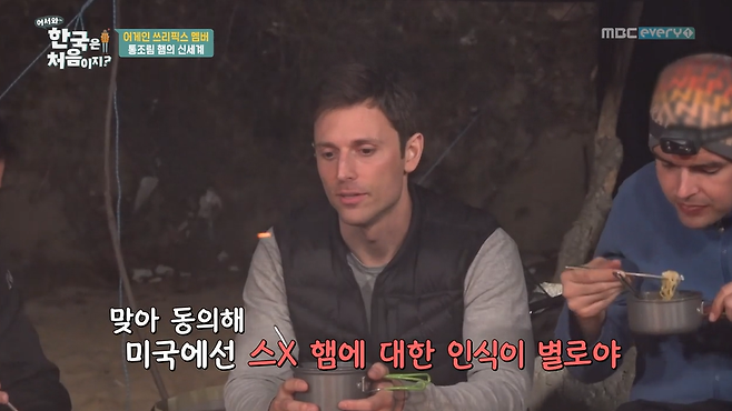 '어서와 한국은 처음이지'에서 와일드 캠핑을 간 외국인 친구들. 여기서 스팸에 대한 신기한 이야기를 들을 수 있었죠!!!