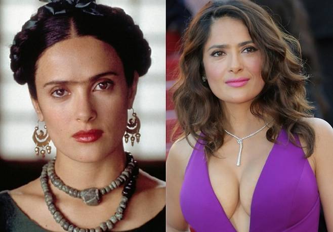 다름 아닌 영화 '프리다' 때문이었는데요. 이 작품은 셀마 헤이엑 필모그래피에서 중요한 부분을 차지하는 명작이지요. 여기서 헤이엑이 화가 프리다 칼로와 높은 싱크로율을 보여 화제가 되기도 했습니다.